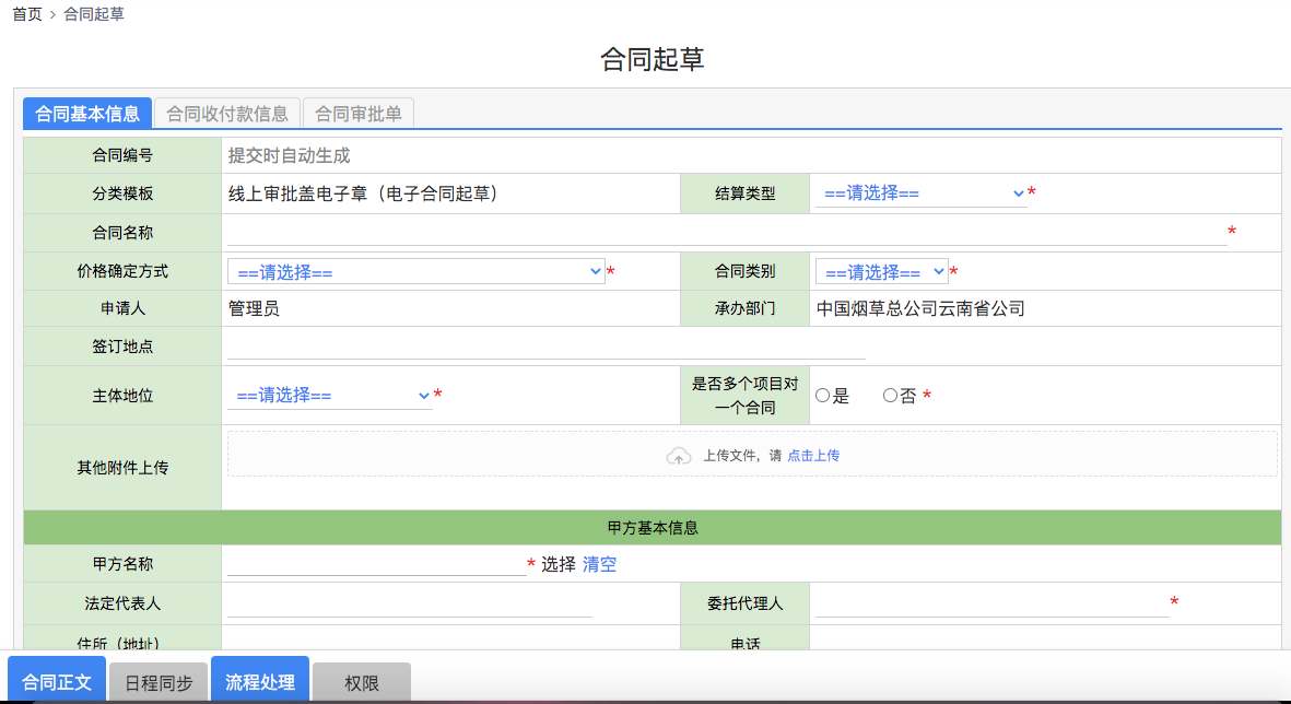 省煙草提出數(shù)字化轉(zhuǎn)型,其中合同管理的數(shù)字化是云南省煙草數(shù)字轉(zhuǎn)型的重要一環(huán)。線下合同簽訂耗時過長、無法滿足合同高效集中管理需求。