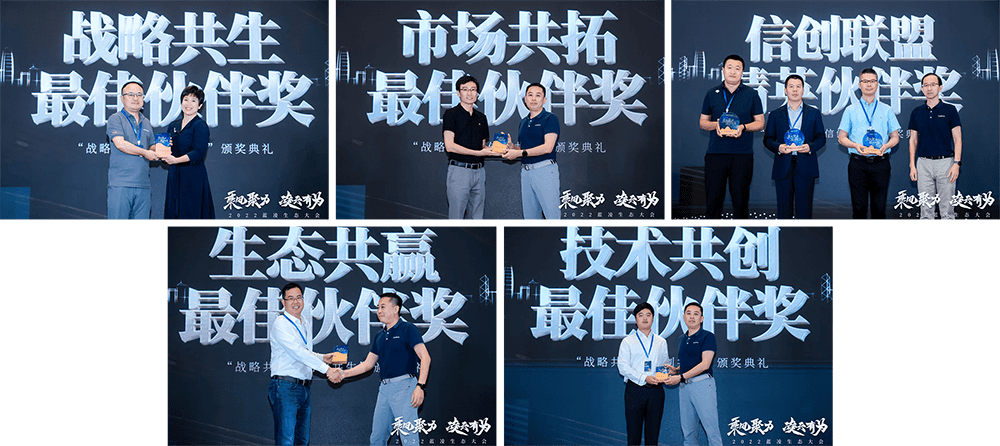 大會也為獲得戰(zhàn)略共生最佳伙伴獎、生態(tài)共贏最佳伙伴獎、技術共創(chuàng)最佳伙伴獎、市場共拓最佳伙伴獎、信創(chuàng)生態(tài)聯(lián)盟精英獎的伙伴頒發(fā)了榮譽證書。