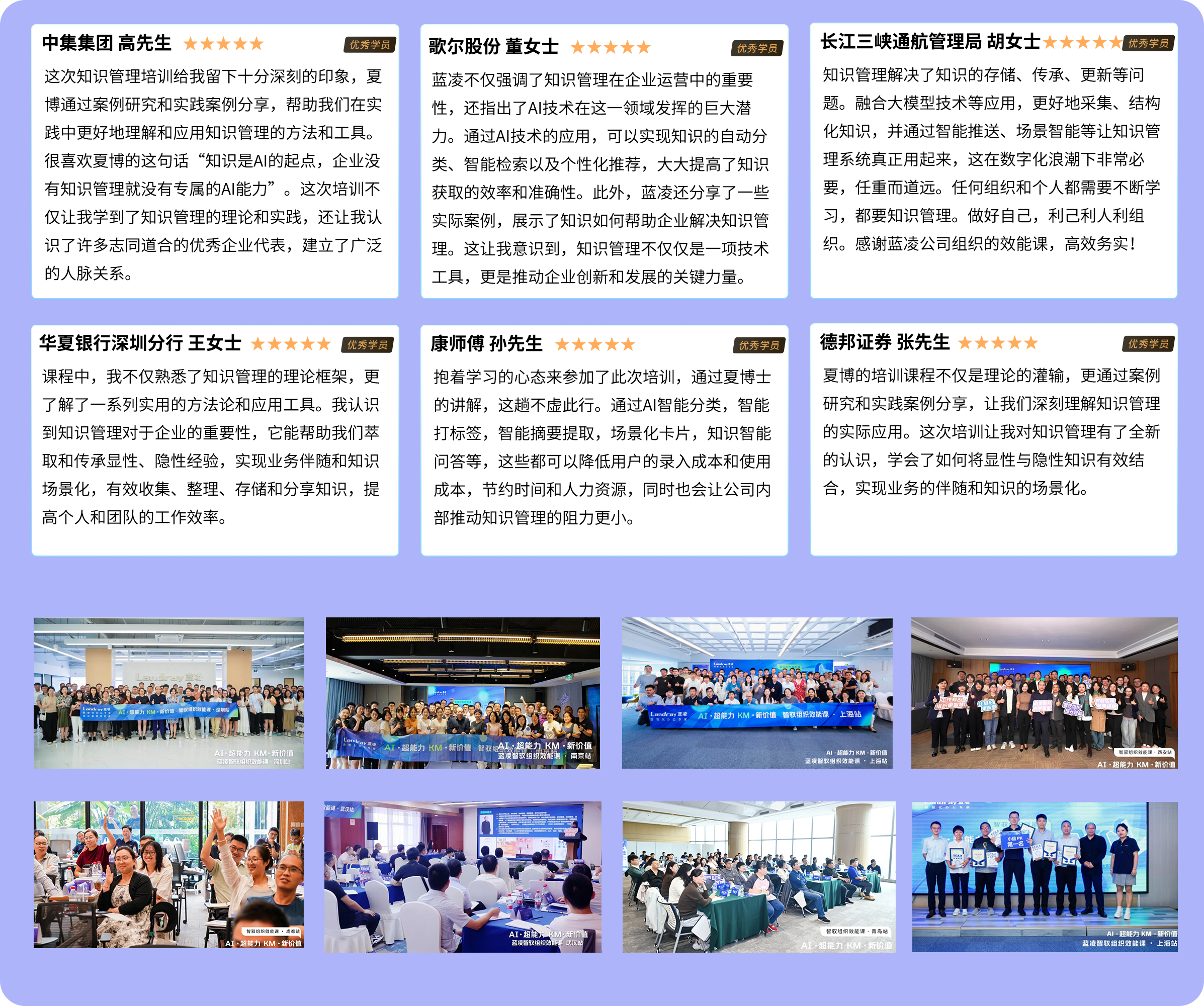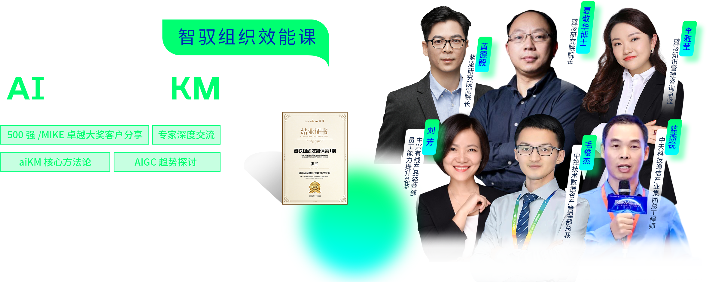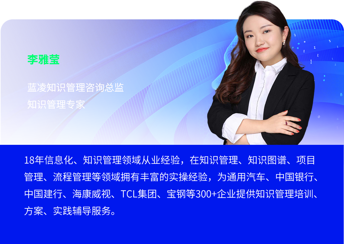 藍凌軟件作為數(shù)智化辦公專家,自2011年開始舉辦數(shù)智化、知識管理等相關(guān)公開課培訓,至今已成功舉辦100期,吸引近10000名學員參與。2024年7月,藍凌將推出“AI超能力 KM新價值”智馭組織效能課,聚焦于AI技術(shù)在KM領(lǐng)域的應(yīng)用以及在制造、央國企、金融、科研院所、軟件等行業(yè)及領(lǐng)域的實踐,探索AI與知識管理如何賦能企業(yè)增長增效。