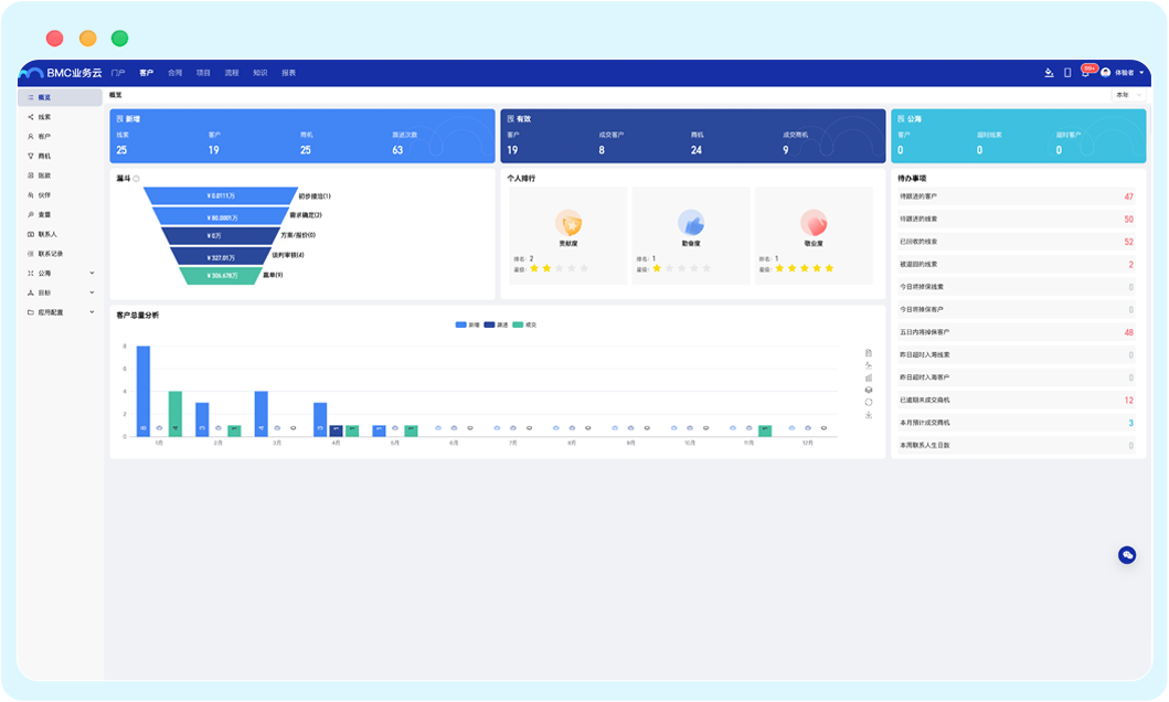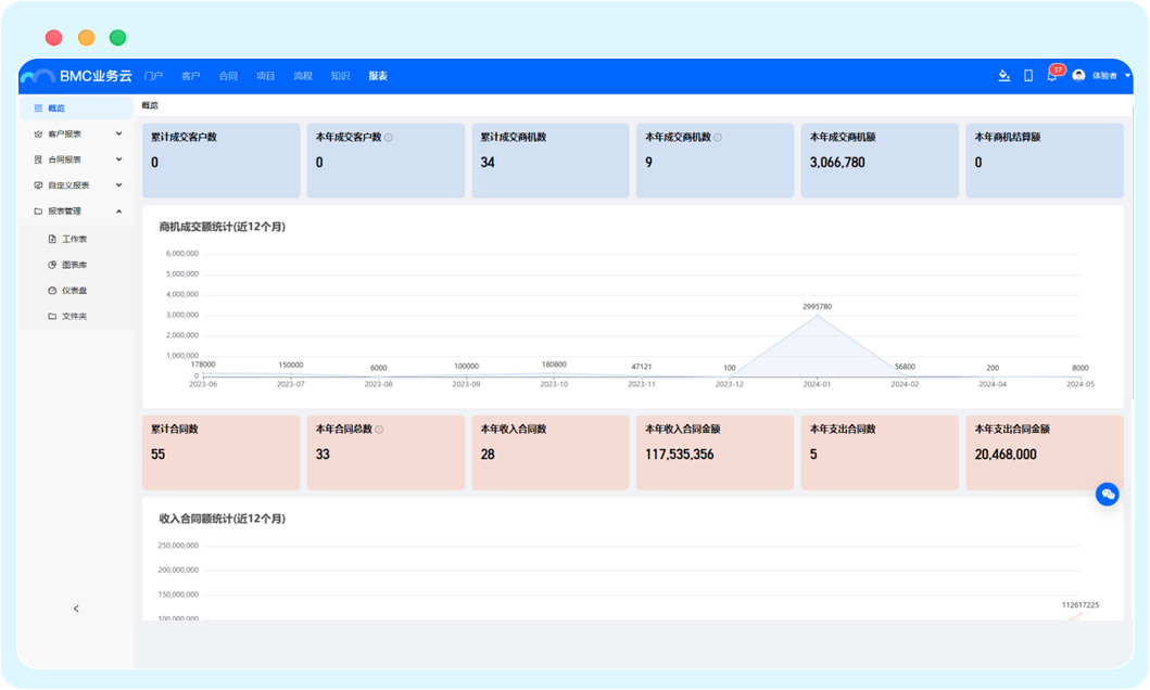 客戶報(bào)表:線索、客戶、商機(jī)、伙伴分析、目標(biāo)統(tǒng)計(jì)