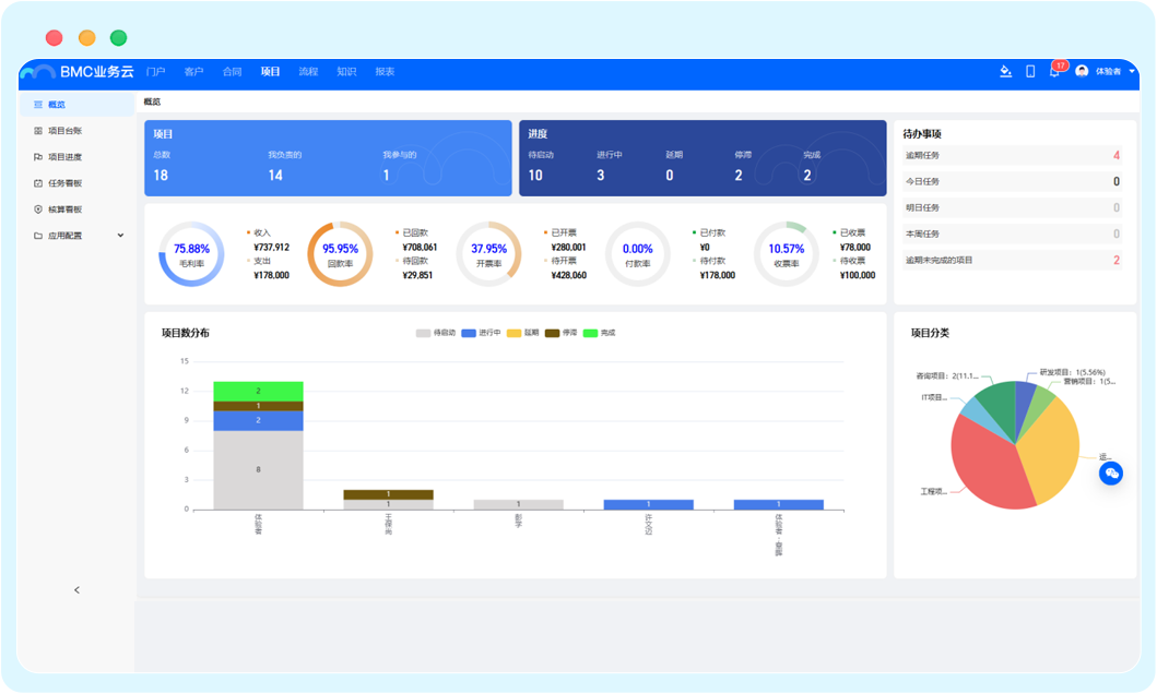 以數(shù)據(jù)服務(wù)為特色的新型民間智庫(kù)。通過(guò)BMC對(duì)整個(gè)項(xiàng)目的啟動(dòng)、規(guī)劃、執(zhí)行、監(jiān)控和收尾等過(guò)程進(jìn)行有效組織、協(xié)調(diào)與控制,同時(shí)貫穿了客戶、合同、財(cái)務(wù)報(bào)銷等模塊,實(shí)現(xiàn)了項(xiàng)目的毛利核算。