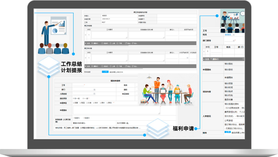 覆蓋會(huì)議管理、日程管理、規(guī)范制度、車輛管理、固資管理、印章管理、任務(wù)管理、投票管理、問卷調(diào)查、員工活動(dòng)、用品管理、證照管理等100+場(chǎng)景