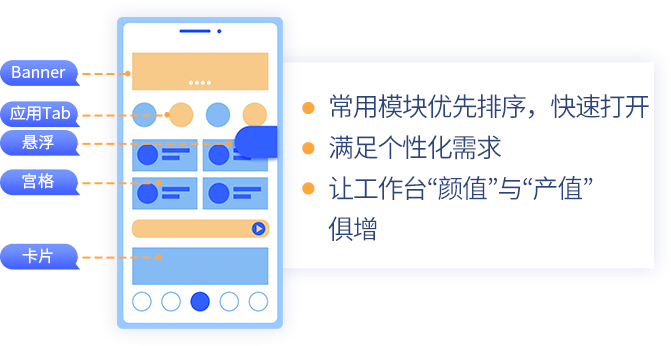企業(yè)發(fā)展快,釘釘工作臺上應(yīng)用越來越多,但分類展示不合理,高頻應(yīng)用不突出,拖累辦公效率。開通高級工作臺后,發(fā)起流程、查詢信息更便捷了,組織提效明顯。