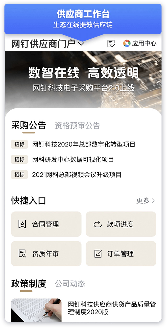 公司年輕,90后居多,希望將釘釘工作臺打造成獨(dú)具特色的“在線辦公室”,原工作臺難以滿足個(gè)性化需求,開通高級工作臺后,企業(yè)形象更鮮明了,界面美觀,操作便捷,全體員工效率都翻倍了。