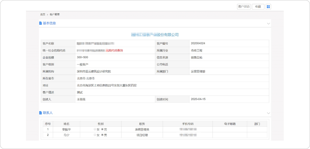 提供客戶基本信息的錄入、修改、查詢、分析等方面的功能,對客戶進(jìn)行分級劃分,優(yōu)先跟蹤重點客戶;提供客戶拜訪記錄保存,促進(jìn)客戶商機(jī)挖掘與轉(zhuǎn)化,進(jìn)而促進(jìn)簽單。