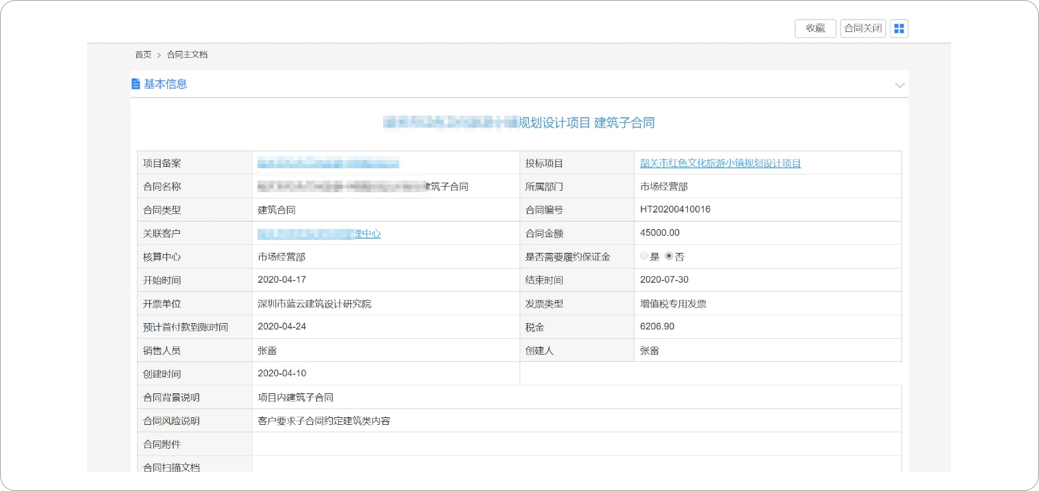 BMP提供包括主子合同分類、錄入、合同對應(yīng)的收款計劃錄入、合同執(zhí)行情況跟蹤、合同權(quán)限及其合同的審批等管理功能,推動合同在線高效管理,更快履約。