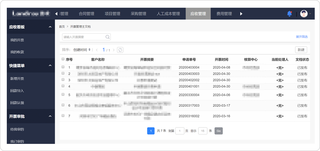 BMP提供了針對合同的收款計劃的開票、收款功能,同時提供合同的收款與項目收款的勾稽關(guān)系,能實時統(tǒng)計合同、項目對應(yīng)的開票收款情況,進(jìn)而促進(jìn)項目回款。
