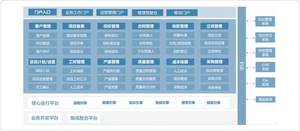 經(jīng)營在線、項(xiàng)目管理、業(yè)財一體化、知識管理、協(xié)同辦公、商業(yè)智能