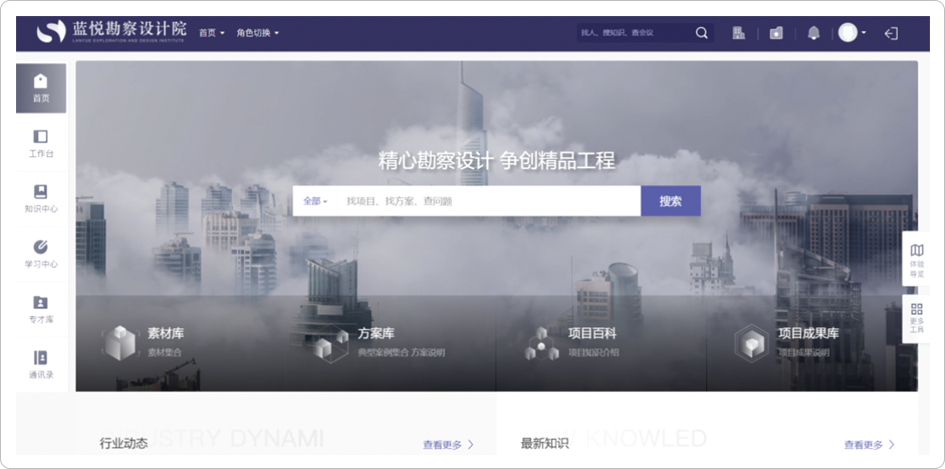 通過規(guī)章制度庫、作品集、方案庫、項目庫、項目百科、問題庫,藍凌打造勘察設(shè)計行業(yè)“六庫全書”,涵蓋勘察設(shè)計企業(yè)核心知識內(nèi)容,提升設(shè)計院管理精細化、業(yè)務(wù)協(xié)作水平。