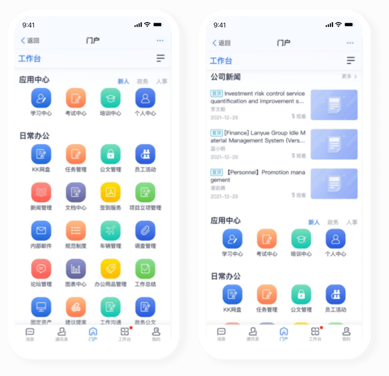 快速配置多角色門戶,集中待辦、信息、知識,打造千人千面移動工作臺,讓高管、新人、供應商等高效協(xié)作。
