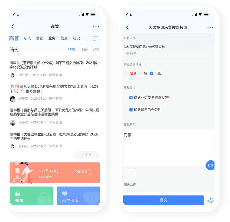 多系統(tǒng)待辦消息統(tǒng)一推送移動端,實時處理更高效;流程知識嵌入,審批要點特別提示,讓流程處理更準確。