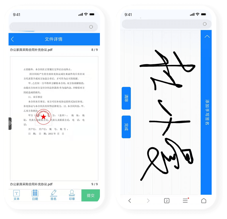 支撐合同快速擬定、審核,輔以智能比對,防范文本不一致;電子合同在線簽署,大量節(jié)省打印、快遞等成本。