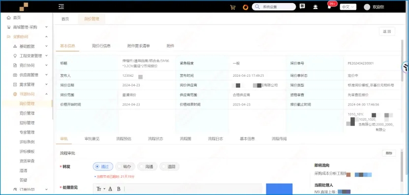 流程卡片嵌入SRM業(yè)務(wù)系統(tǒng),不改變用戶原有系統(tǒng)體驗;同時業(yè)務(wù)系統(tǒng)審批時,可以實現(xiàn)業(yè)務(wù)表單的數(shù)據(jù)權(quán)限管控…助力SRM流程自動化與靈活性,提升供應(yīng)鏈的敏捷性。