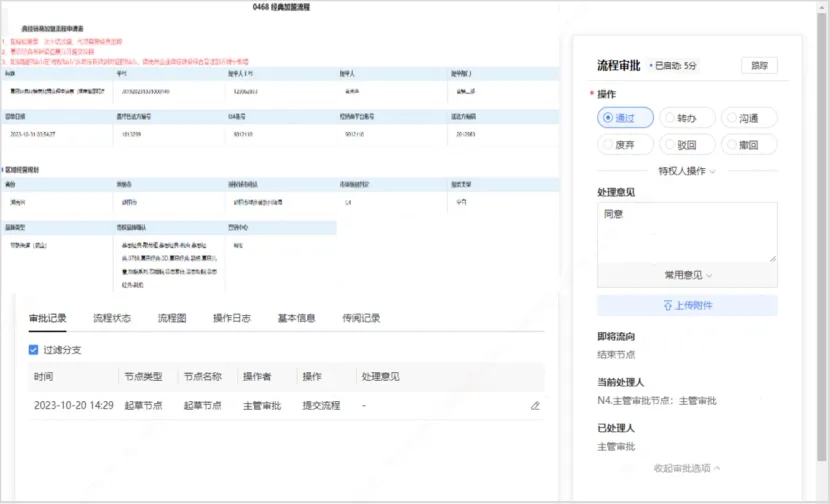 在流程節(jié)點的審批卡片上,添加自定義表單,拓展業(yè)務(wù)表單之外的字段,支持復(fù)雜的審批場景,提升流程可用性與體驗。