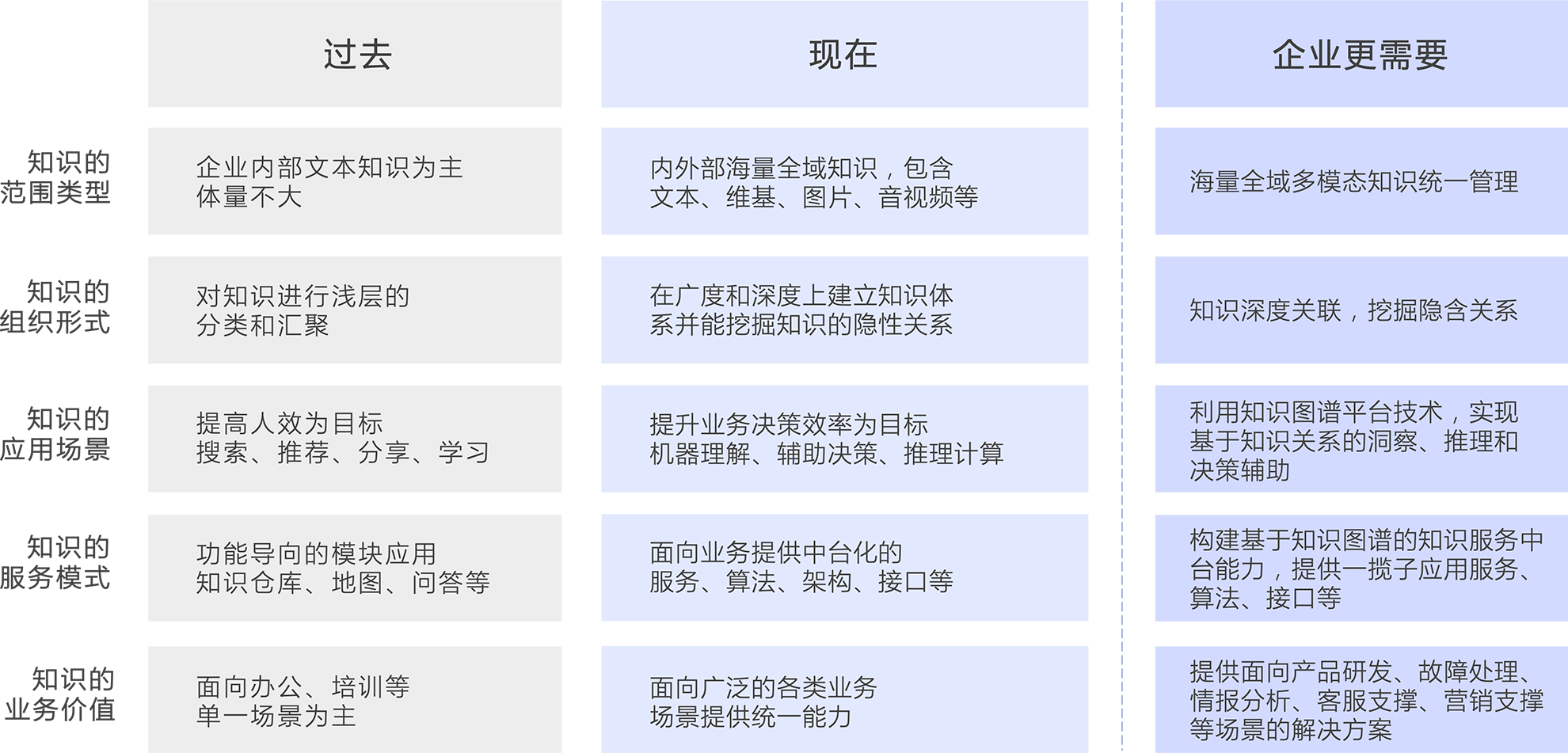 從IT時(shí)代到DT時(shí)代,組織的知識(shí)范圍類型、構(gòu)成形式、應(yīng)用場(chǎng)景、服務(wù)模式、業(yè)務(wù)價(jià)值已發(fā)生巨大改變,企業(yè)知識(shí)管理面臨巨大挑戰(zhàn)與升級(jí)需求……