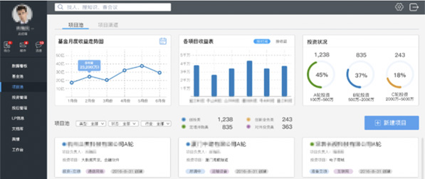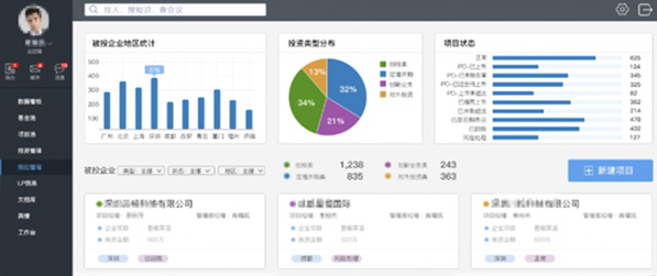 打造一體化投資管理平臺(tái),將公司管理制度與流程、協(xié)同工作、知識(shí)管理結(jié)合,形成一整套內(nèi)部管理支撐工具,包括統(tǒng)一的基金及項(xiàng)目臺(tái)賬、風(fēng)險(xiǎn)管控與預(yù)警、標(biāo)準(zhǔn)化投資數(shù)據(jù)中心等報(bào)表統(tǒng)計(jì)分析等,讓業(yè)務(wù)效率提升明顯。