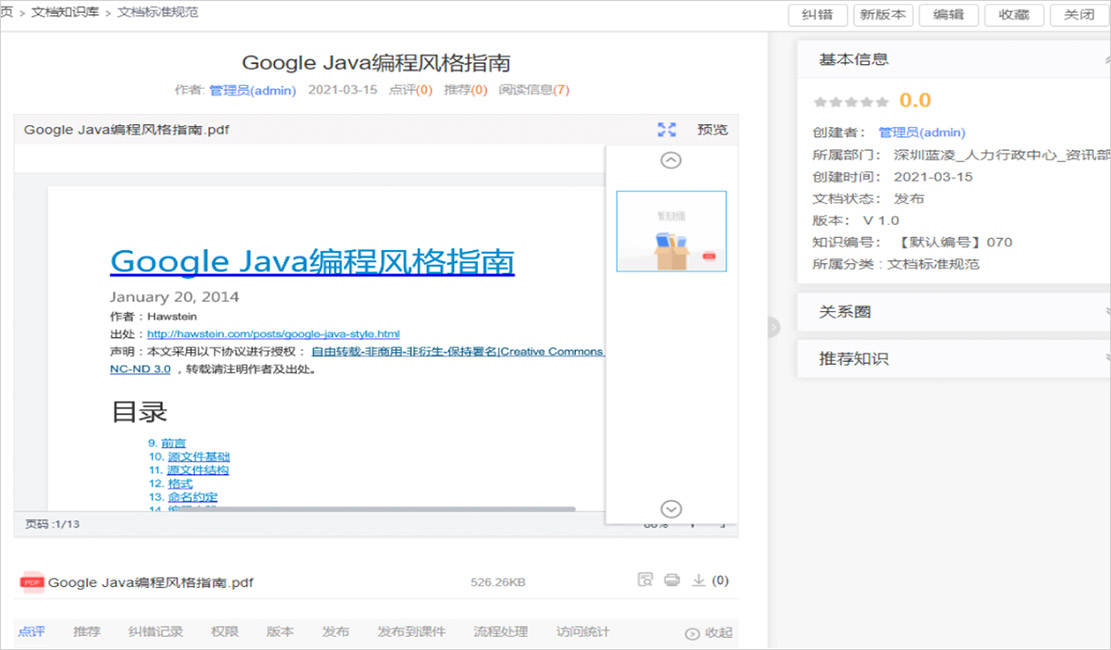 平臺支持管理員對文件進(jìn)行編輯、完善,審批通過后,即可查看最新文件內(nèi)容