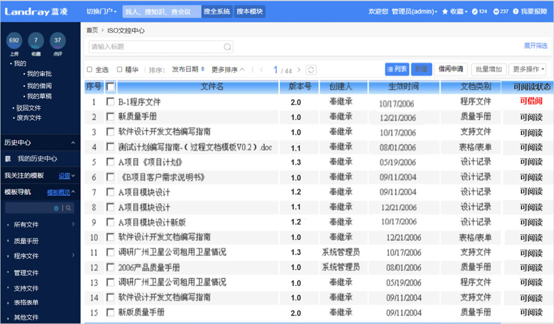 依托在知識管理、文檔管理領(lǐng)域成熟的功能應(yīng)用和豐富的實(shí)施經(jīng)驗(yàn),可為ISO文控管理提供全面支持