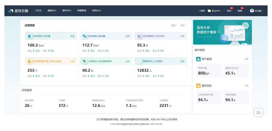 打造運營管理駕駛艙,滿足水務(wù)集團各級用戶的使用需求