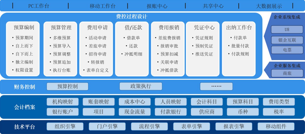 • 構建費用管控平臺,實現(xiàn)預算編制、預算管理、費用申請、費用報銷、付款管理等一體化管理,助力企業(yè)提效降本