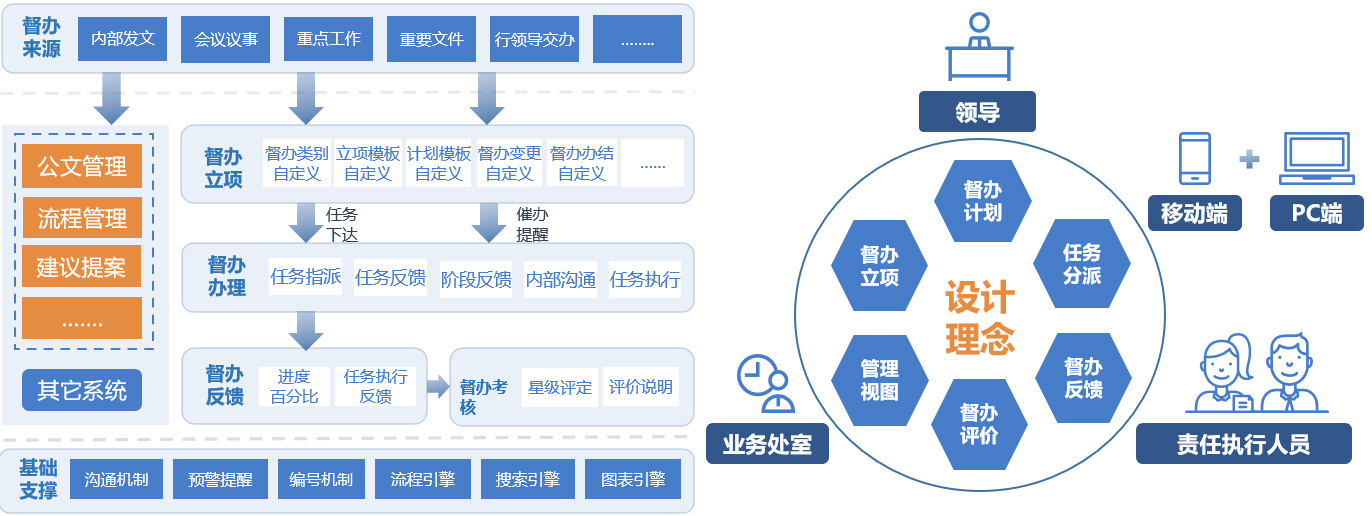 • 構建公文管理、會議管理、督辦管理、任務管理等多領域協(xié)同管理平臺,提效全員協(xié)作,助力公司辦文辦會辦事更高效