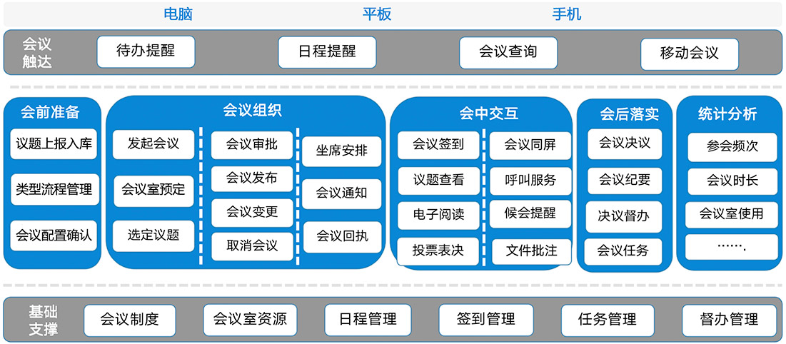實現(xiàn)簽到、紀(jì)要、議題、決議、督辦等全過程閉環(huán)會議管理,移動會議讓開會更簡單