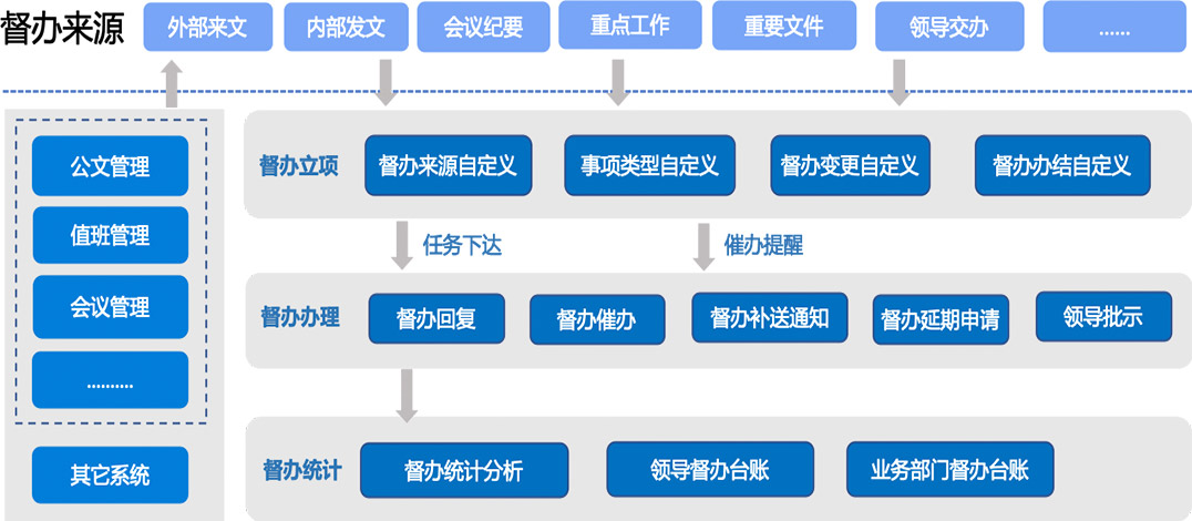涵蓋立項、反饋、看板、評價等督辦板塊,支撐督辦全流程管理,實時督辦更靈活