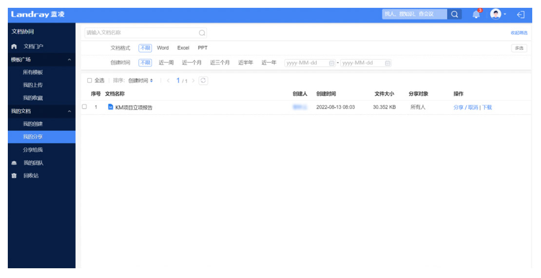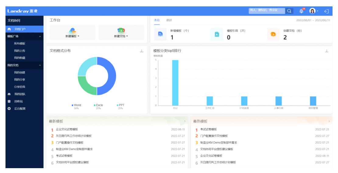 模板、文檔成果等統(tǒng)一存儲至平臺中,實現(xiàn)知識的有效沉淀,便于知識復(fù)用