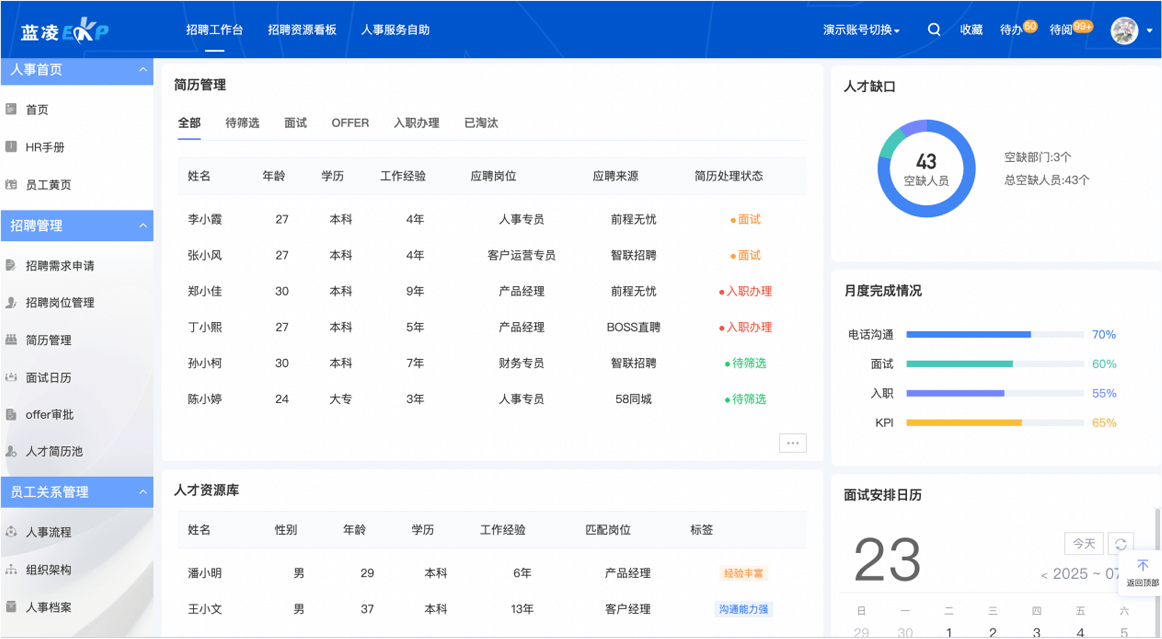 聯(lián)動(dòng)其他業(yè)務(wù)模塊,讓業(yè)務(wù)場(chǎng)景前后打通,實(shí)現(xiàn)招聘、入職、賬號(hào)開通、培訓(xùn)、考核、轉(zhuǎn)正的全程數(shù)字化 。